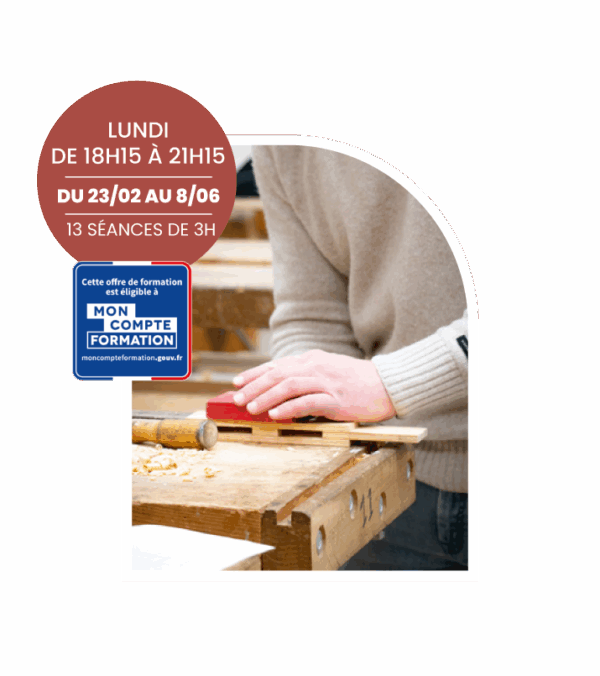Lors de cet atelier, vous vous pencherez sur l’étude et la réalisation d’ouvrages en bois. Ce cours menuiserie débutant soir Bordeaux vous permet de découvrir l’environnement du métier de menuisier au sein d’un atelier entièrement équipé.