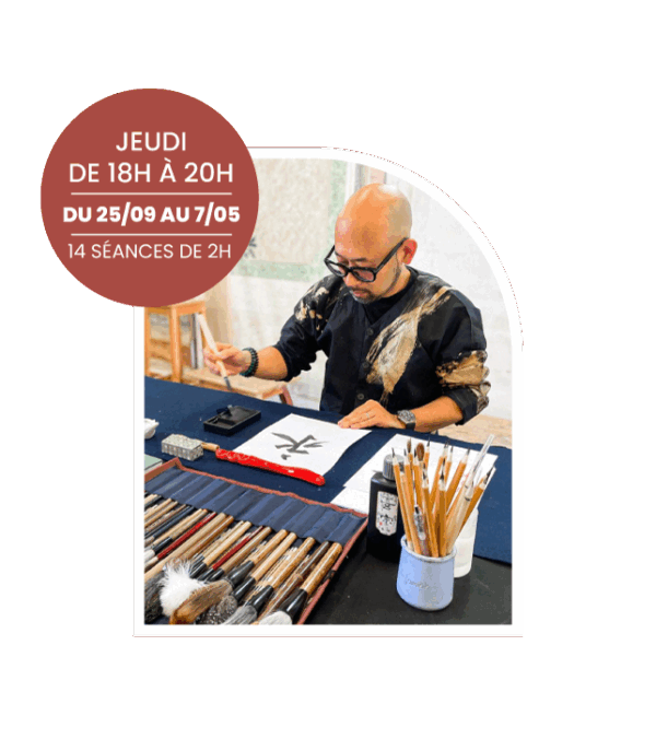Durant cet atelier, vous serez guidé à travers l’Histoire et l’évolution de la calligraphie, à la posture et la gestuelle du calligraphe, ainsi qu’à la compréhension de l’utilisation des outils comme l’utilisation du papier japonais « washi », le maniement des pinceaux « fude » ou encore la fabrication de l’encre « sumi ».