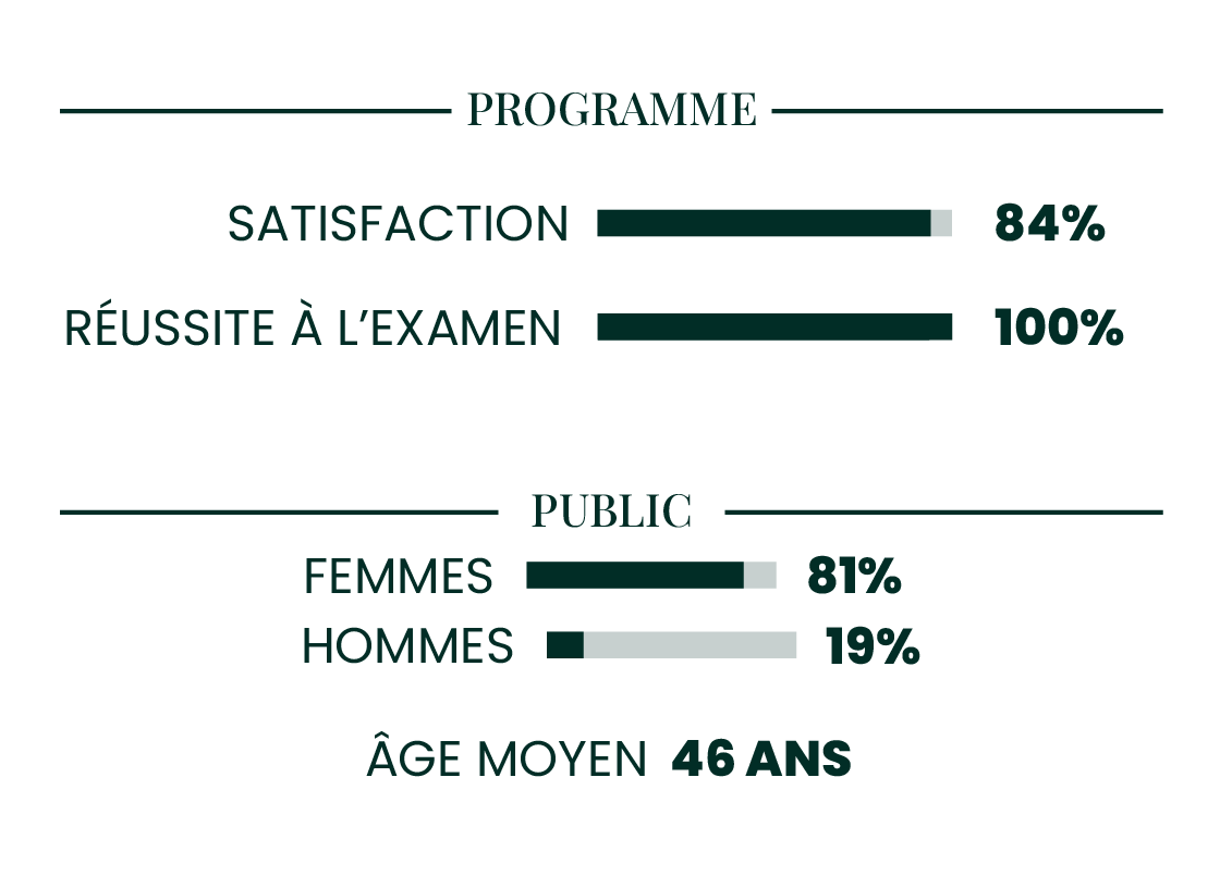 En autofinancement complet vous pouvez échelonner le paiement de la formation : 30% d’acompte à l’inscription, puis versement en septembre, octobre, novembre et décembre.