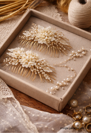Exemple de réalisation d'un bijou de cheveux artisanal conçu par un apprenant en formation CS Bijouterie de mode à la Philomathique de Bordeaux.