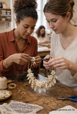 • Nos formateurs vous transmettent bien plus que des gestes : ils vous apprennent les méthodes et standards attendus dans le secteur de la bijouterie de mode. Exigence des finitions, précision des assemblages, choix des procédés selon les matières (métaux non précieux, apprêts, résines, matières souples), logique de production et contrôle qualité : l’objectif est une montée en compétences rapide et concrète, directement mobilisable en emploi ou en création d’activité.